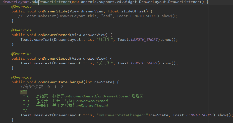 drawerLayout左侧菜单(或者右侧)的展开与隐藏可以被DrawerLayout.DrawerListener的实现监听