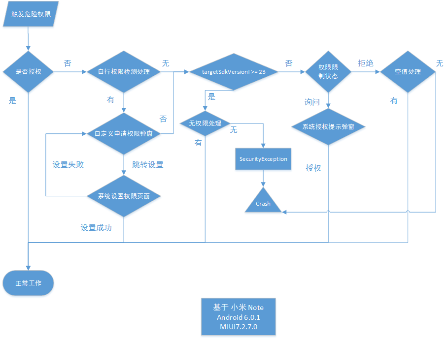 android 6.0 对权限管理,做了重新定义,导致项目的targetSdkVersion 是23 系统就会默认使用新的权限管理,也是6.0 的权限管理。