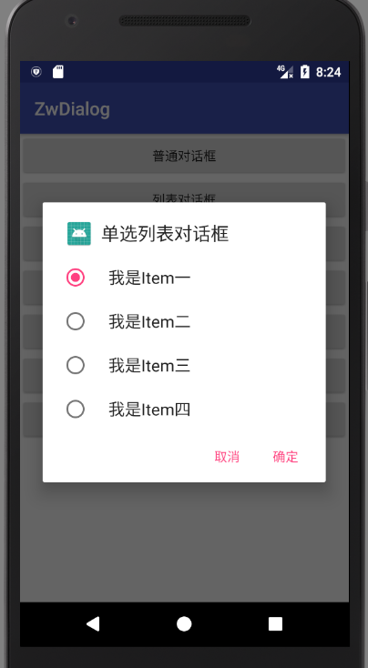 3.单选列表对话框